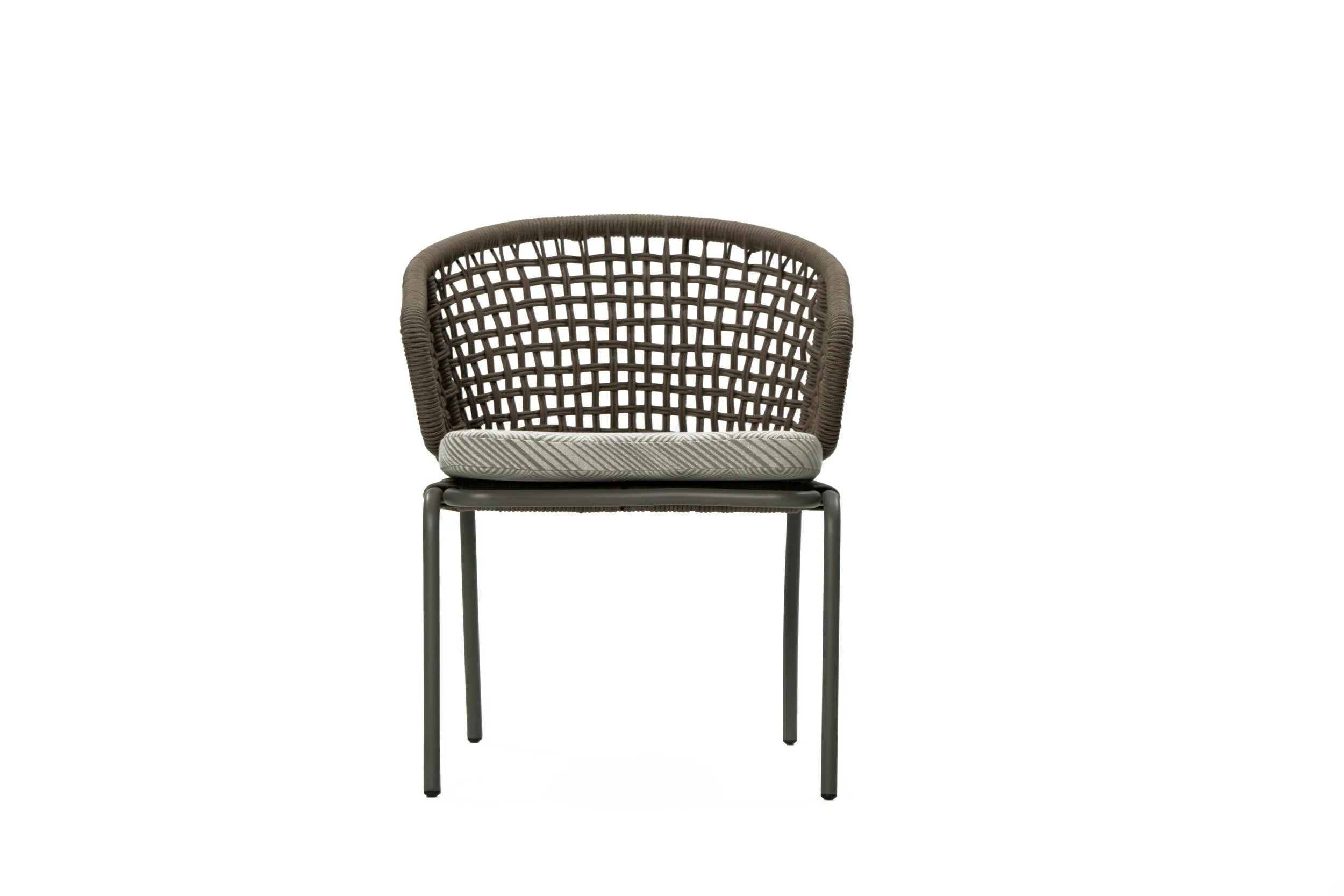Structure: Aluminum frame in powder coating finishing with rope weaving. Cushion in outdoor acrylic fabric with 5 years warranty fabric and quick dry foam.